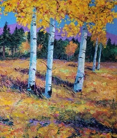 Aspens in the fall are simply amazing! These exciting bursts of color are fun for the painter! The bark and leaves give an intriguing subject with which to be creative. Instructor shares the process she uses to take this journey through an aspen forest.